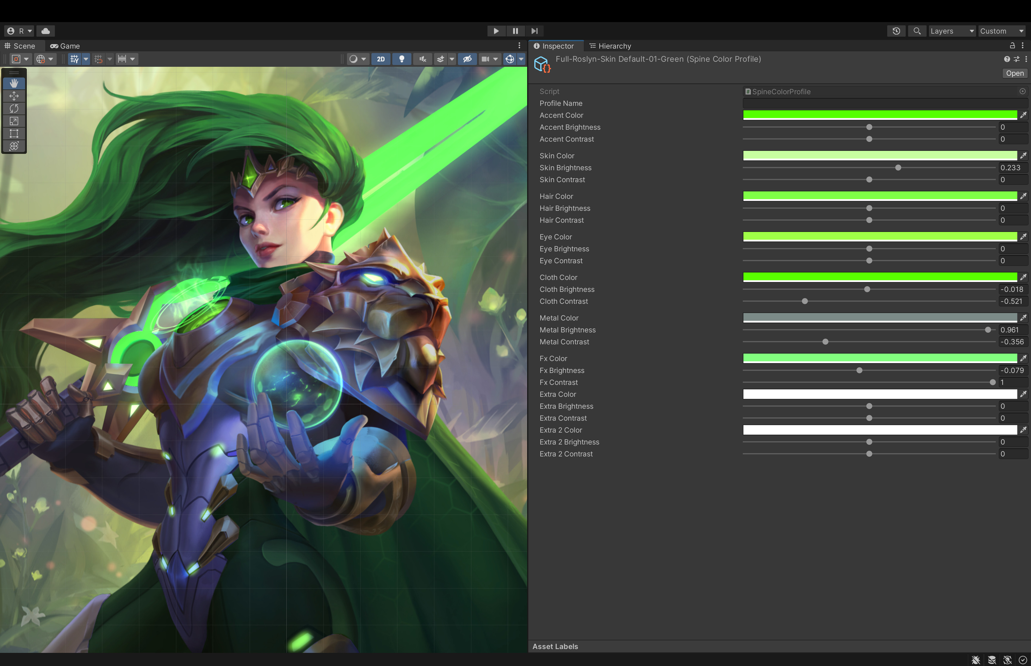 The C# scripts I wrote create custom Scriptable Objects color profiles that store hue values and can be attached to characters. The colors can be defined in the Editor at runtime. The Scriptable Object's accessible nature potentially allows players and developers to customize hues to their tastes.