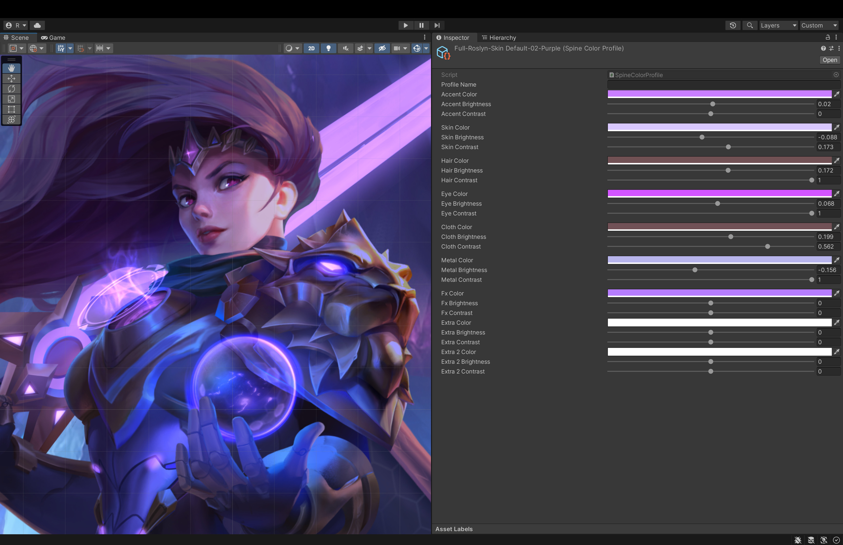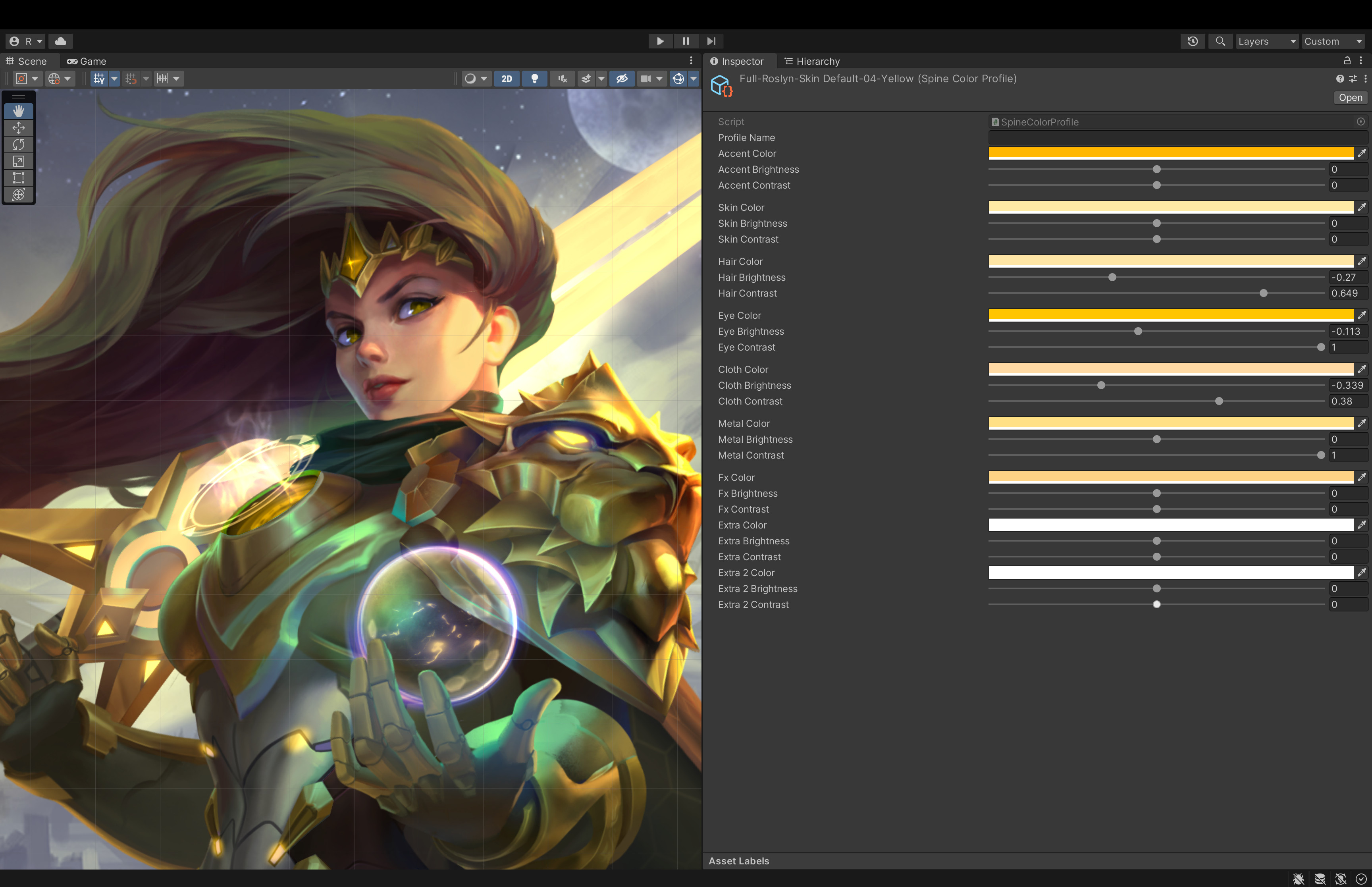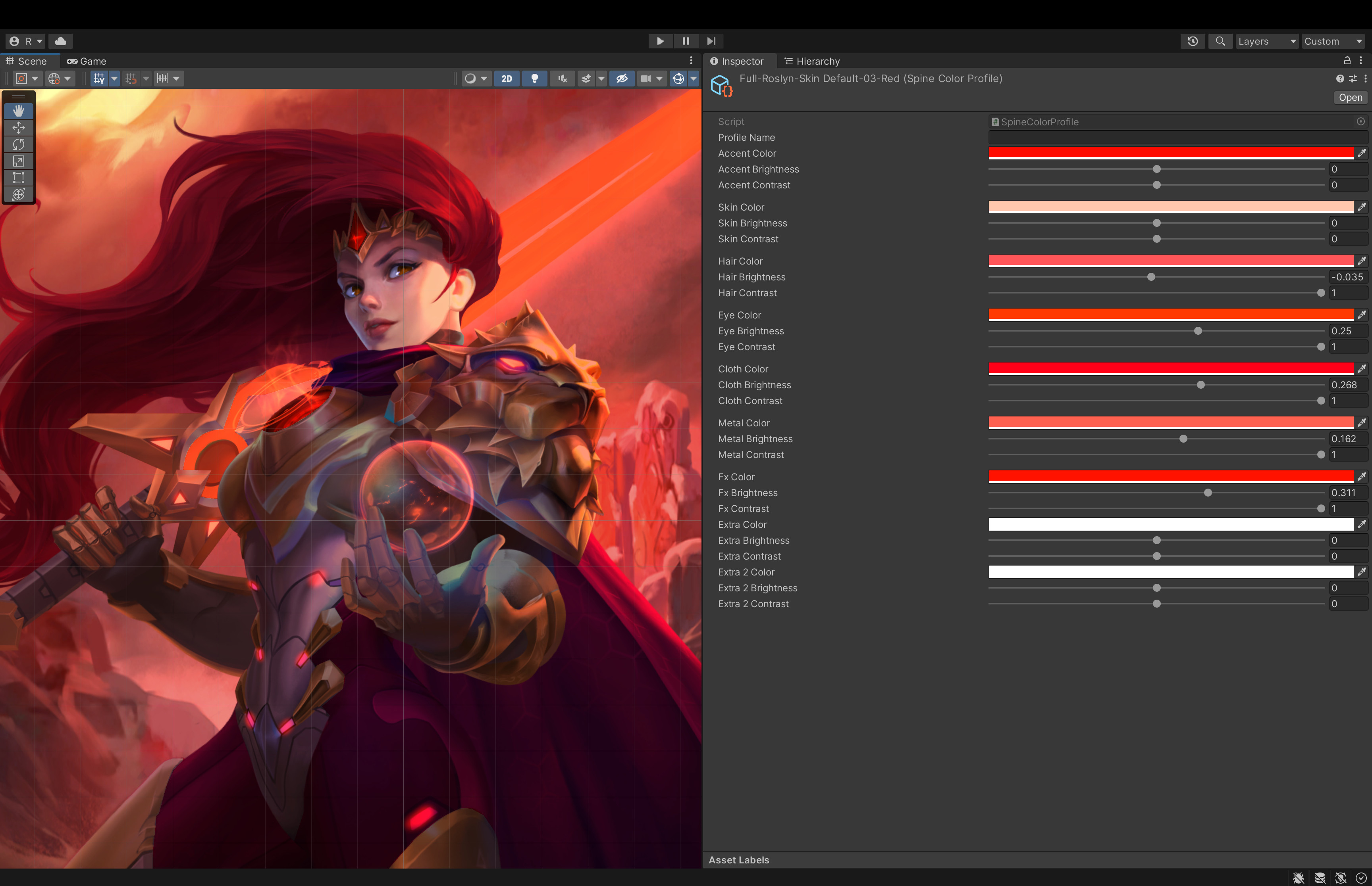 SpineColorProfile.cs :Creates a Unity Scriptable Object menu item. This also exposes the custom color fields in editor.